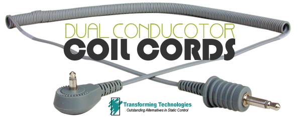 Over the past year, Transforming Technologies has worked diligently to create a line of dual conductor grounding products that is competitive in design and value to 3M’s dual line.   Recently our CC3000 Series Dual Conductor Coil Cords were put through an independent test by Affinity Static Control Consulting. Below is an excerpt from their test results.