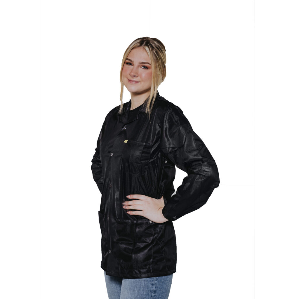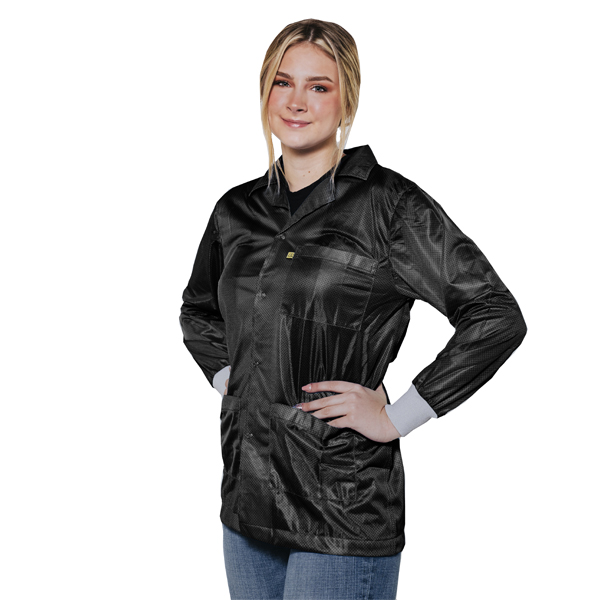 Black ESD Jackets are an excellent choice for your quality control department because they show less stains and dirt, plus everything matches black. Transforming Technologies offers ESD Jackets in our lightweight 8812 ESD fabric and our Medium weight 9010 ESD Fabric. We have several styles: