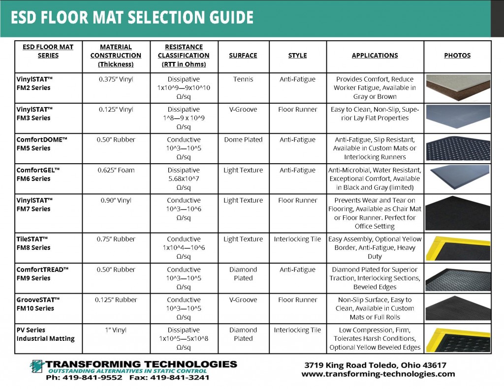 Introducing Transforming Technologies ESD Mat Selection Guide